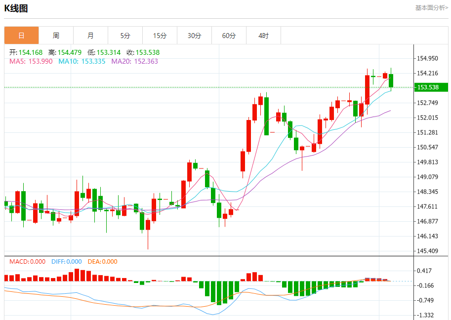 今日周二,截止目前美元兑日元报153.539,下跌0.44%。
