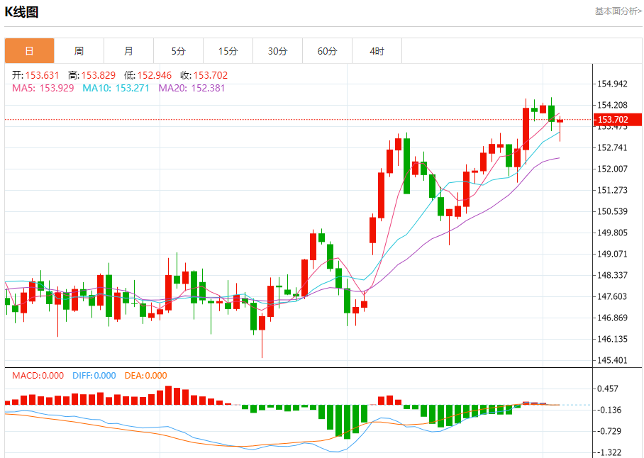 周三纽盘,美元兑日元交投于153.730,涨幅为0.03%。