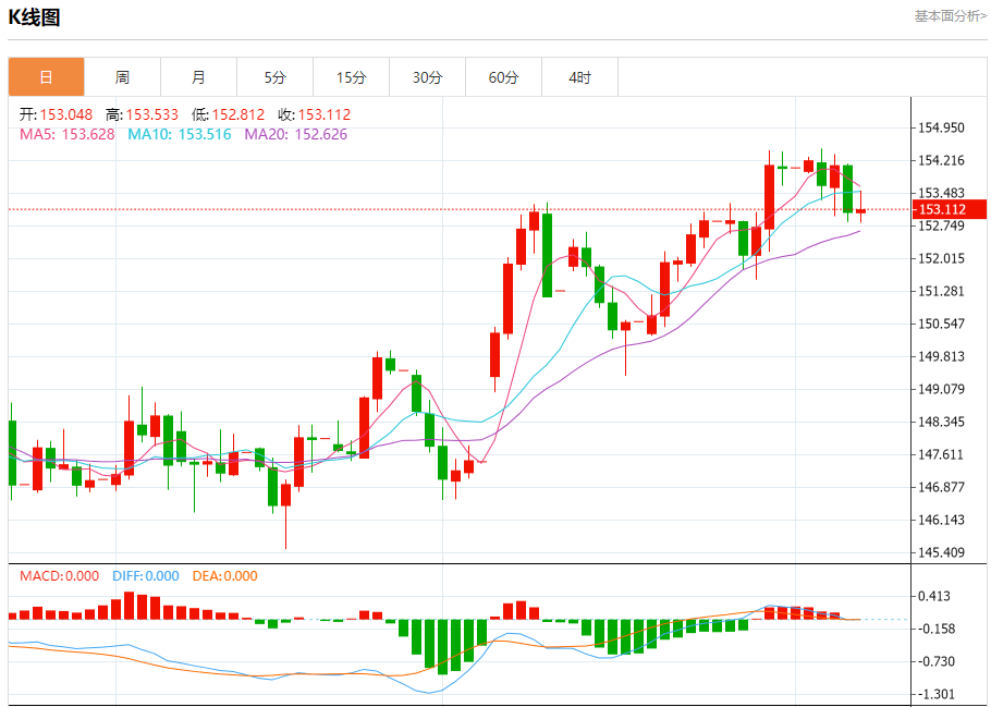 今日周五,截止目前美元兑日元报153.115,上涨0.03%。