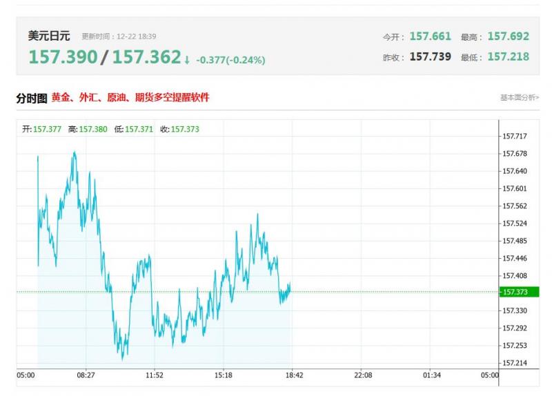 美元兑日元今日汇率最高157.390,最低157.362 ,涨跌-0.377 ,涨跌幅-0.24% 。