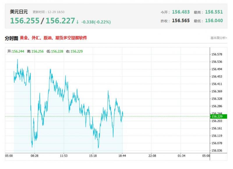 美元兑日元今日汇率最高156.255 ,最低1156.227,涨跌-0.338 ,涨跌幅-0.22% 。