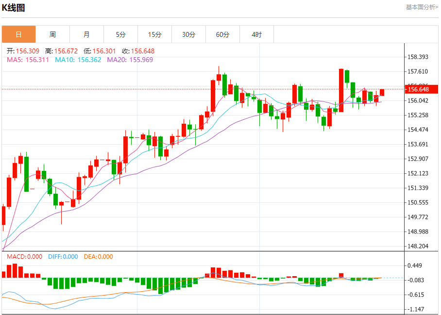 周三纽盘,美元兑日元交投于156.661,涨幅为0.21%。