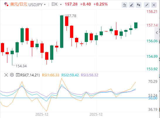 4小时图上的100期简单移动平均线(SMA)温和上升至156.31,显示出持续的上升偏向。美元兑日元对维持在该指标上方,平均线即为动态支撑。移动平均收敛背离线(MACD)位于信号线上方并回落至正区间,直方图略有扩展,强化了动能的改善。相对强弱指数(RSI)位于62,显示出强烈的买入压力,但没有超买条件。如果动能持续,货币对可能继续上线,而回调则使100 SMA成为焦点。