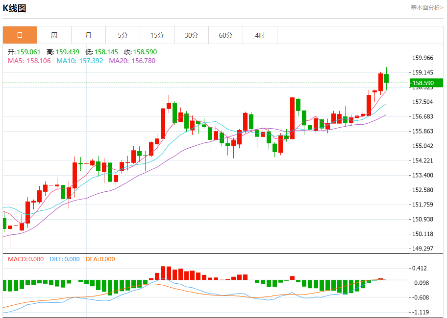 周三纽盘,美元兑日元交投于158.621,跌幅为0.31%。