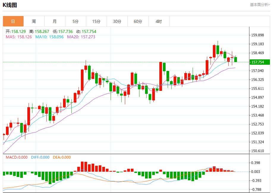 周三纽盘,美元兑日元交投于157.781,跌幅为0.24%。