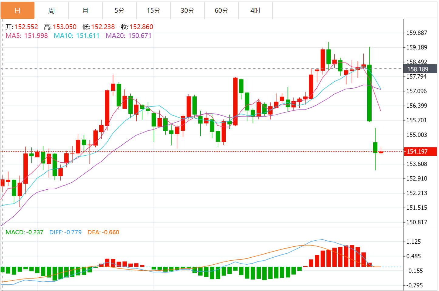 从技术角度看,持续跌破并接受跌破154.00水平支撑,同时接近100日简单移动平均线(SMA),将被视为USD/JPY空头的新触发点。随着移动平均收敛背离(MACD)滑落至零线以下并进一步向下延伸,势头已减弱,暗示看跌压力正在形成。