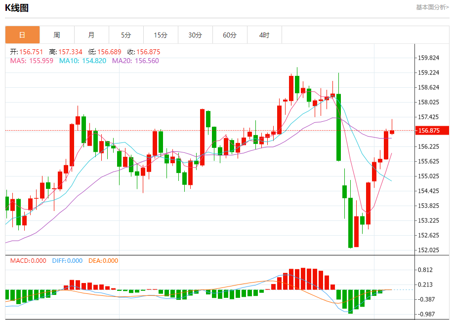 阻力位:157.33 157.42 157.50