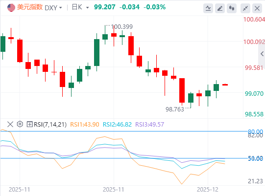 美国劳工部的JOLTS报告周二显示,10月份职位空缺增加至767万个,超过了720万的预测。该报告显示劳动力市场强劲,可能对降息预期造成压力,并推高DXY。交易员目前预计12月会议上降息25个基点(bps)概率接近87.4%,在最新更强的就业报告后下降了2%。