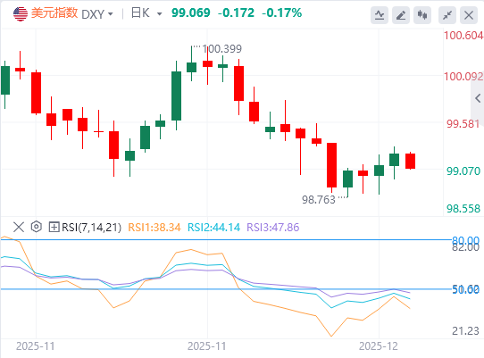 从技术层面分析,美元指数目前交易价格约在99.25美元,在重新夺回99.13美元的支撑位后,正试图突破下降通道。本周的蜡烛图显示,价格低点持续上升,且目前收盘价已处于通道中的阻力位之上,这暗示着市场存在早期多头压力。