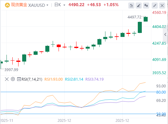 铂金飙升至每盎司约2075美元,触及数十年来的极端高点,年内涨幅约130%。钯金报收于1802美元附近,年内涨幅接近95%,而此前几个周期其表现一直疲软。这对黄金意义重大,因为它凸显了整个板块普遍存在的供应约束和投资轮动,而非单一资产的狂热。当多种贵金属同时突破多年天花板时,很难再说国际现货黄金的走势仅仅是由于某种叙事驱动。