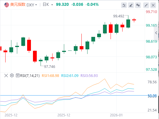 周四美国初次失业救济申请数据进一步强化了美联储未来几个月维持利率停滞的可能性,美元获得了支撑。根据芝加哥商品交易所集团的FedWatch工具,美联储基金期货仍预计美国央行在1月27日至28日会议上维持利率不变的概率约为95%。