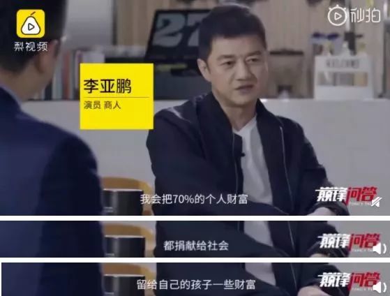 李亚鹏在接受媒体访问时曾表示过,会把70%的个人财产都捐献给社会。