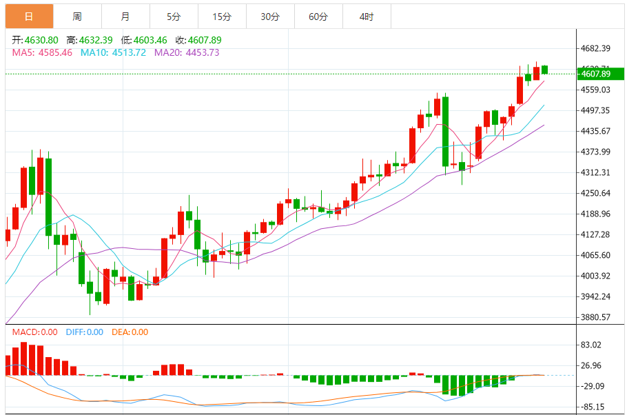 周四亚盘,黄金盘中回落至4600附近,早盘攀升至接近4615美元,并有望重新测试历史高点。由于地缘政治和经济不确定性,贵金属的上涨势头延续,交易者纷纷涌向避险资产。交易者们准备迎接周四稍晚发布的美国初请失业金人数报告。 &em