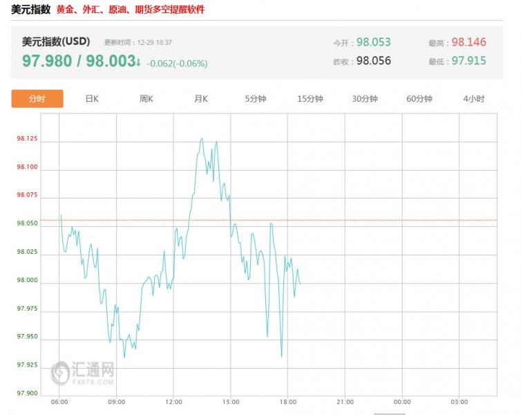 截至2025年12月29日,美元指数延续全年弱势格局,年内累计跌幅超9%,创2017年以来八年最差年度表现,短期反弹动力受限,中长期仍面临多重压制。12月26日圣诞后首个交易日,纽约尾盘ICE美元指数微涨0.05%报98.024,全周累计下跌0.68%,实现连续第二周收跌,交投区间介于97.749-98.728,呈现“先抑后扬”态势;此前12月24日盘中最低触及97.425,创近两月新低,12月11日至23日更连续多日收阴,有效跌破98.50关键支撑位。技术面来看,均线系统呈空头排列,RSI指标约为40未进入超卖区间,MACD零轴下方绿柱持续放大,短期弱势难改,若无法站稳98.50,后续或下探97.00整数关口。