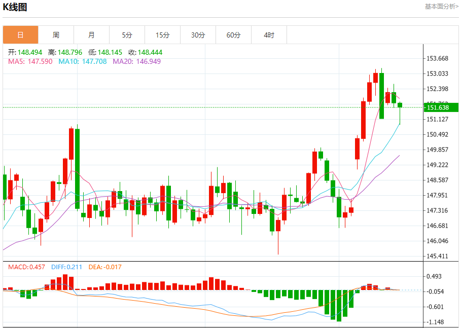 今日周三,欧元兑美元报1.1616,涨幅0.08%;英镑兑美元报1.3344,涨幅0.19%;美元兑日元报151.651,跌幅0.13%。