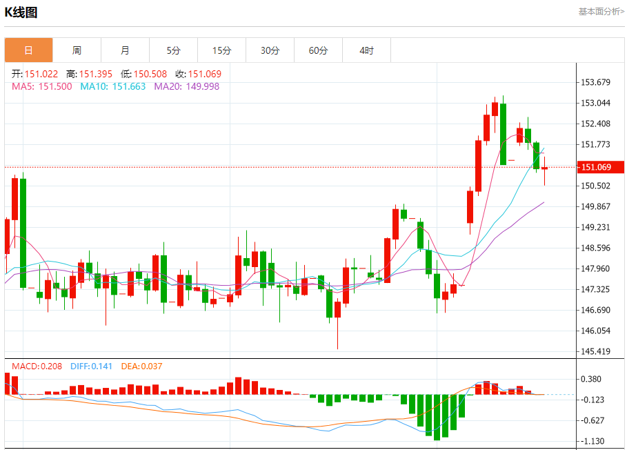 今日周四,欧元兑美元报1.1659,涨幅0.09%;英镑兑美元报1.3442,涨幅0.30%;美元兑日元报151.088,涨幅0.04%。