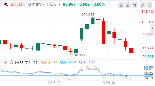 下行方面,澳元/日元的关键支撑位位于96.50日均线100。另一个值得关注的下行过滤器是96.15,这是布林带的下限。任何低于该水平的后续抛售都可能暴露95.00-94.90区域,代表整数关口和8月4日的低点。