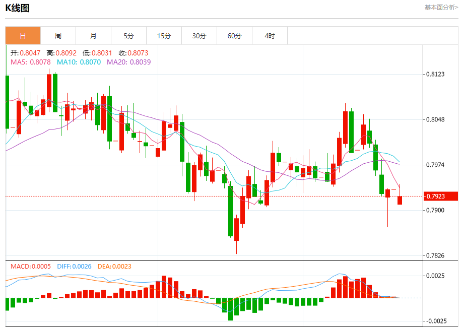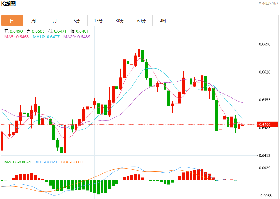 今日周一,澳元兑美元报0.6492,跌幅0.03%;美元兑加元报1.4051,涨幅0.22%;美元兑瑞郎报0.7924,跌幅0.15%。