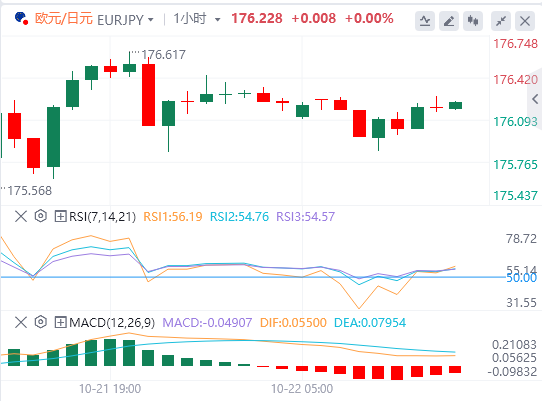 10月22日,周三欧市初盘,欧元/日元在前一交易日录得涨幅后变动不大,交投于176.20附近。由于交易者在本周欧洲央行(ECB)官员的一系列讲话前保持谨慎,该货币对保持稳定,以寻找政策前景的线索。