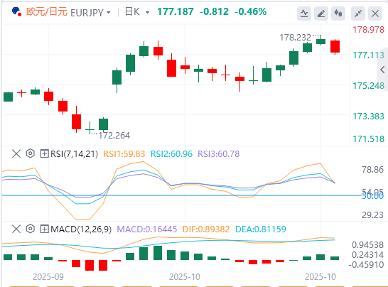 高市在与特朗普会晤之初就发誓要实现该国与美国关系的“黄金时代”。美国和日本之间的贸易紧张局势缓解为日元提供了一些支撑,并成为交叉盘的阻力。特朗普将于周四在韩国与中国习近平会面,在一场残酷的贸易战中进行高层会谈。