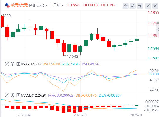 欧元/美元从上周低点1.1580开始处于短期看涨趋势。该货币对在过去五个交易日一直在升值,但4小时图上的动量指标表明趋势疲软。相对强弱指数(RSI)处于50以上的看涨区域,但移动平均线收敛分歧显示短绿色柱状图。