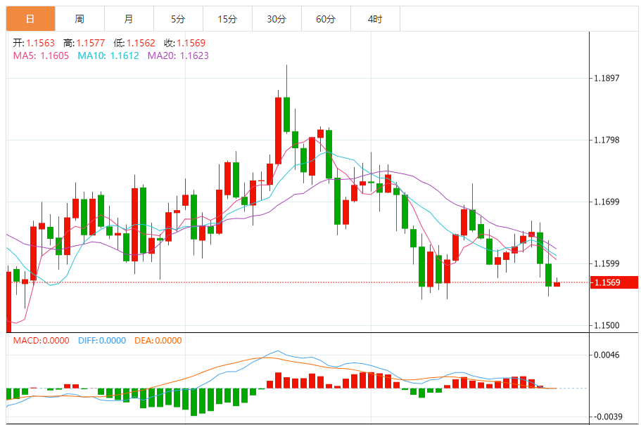 周五,欧元/美元徘徊于1.1570下方,现交投于1.1570附近,涨幅0.05%。
