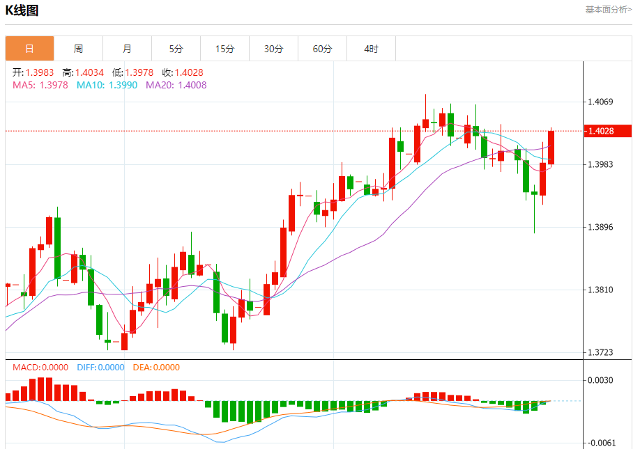 技术点评:在1.3990之上,为多头信号,向上的目标位为1.4015。