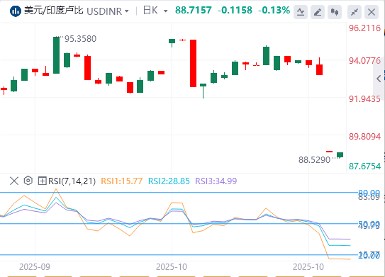 美元/印度卢比跌至88.60附近,因为印度卢比因希望印度储备银行(RBI)继续干预当地现货和离岸市场以支持该货币兑美元汇率扩大跌幅至89.10附近的历史高点而上涨。