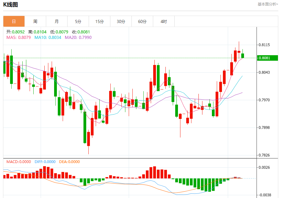 今日周四,澳元兑美元报0.6514,涨幅0.14%;美元兑加元报1.4098,跌幅0.08%;美元兑瑞郎报0.8082,跌幅0.22%。
