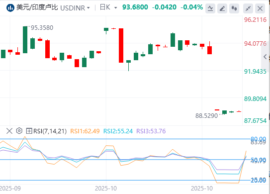 周一,美元/印度卢比在88.80附近震荡。该货币对保持在20日指数移动平均线(EMA)上方,该平均线交投于88.63附近。
