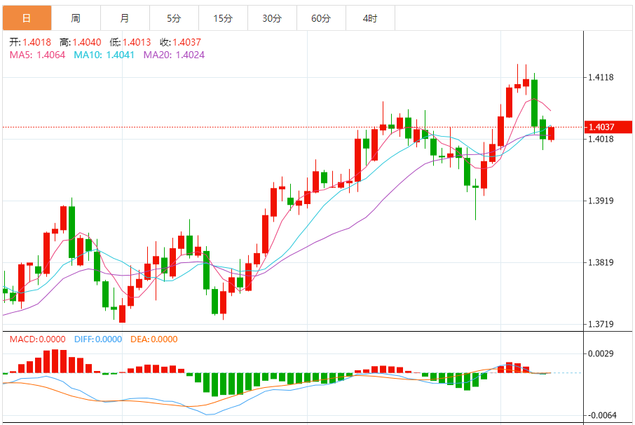 周二,美元/加元徘徊于1.4041下方,现交投于1.4038附近,涨幅0.14%。