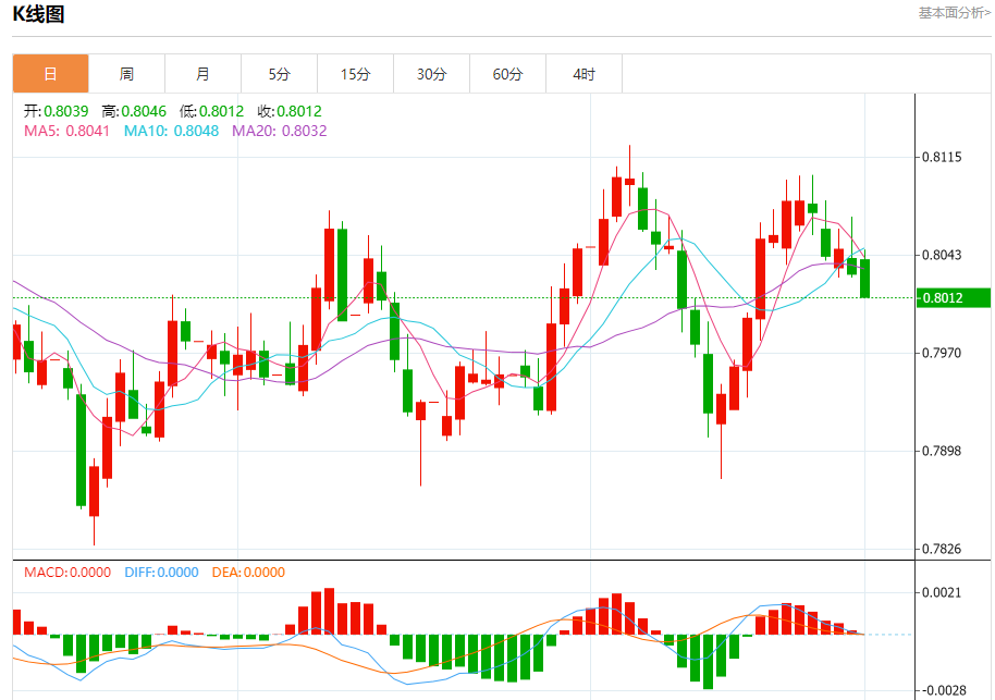 今日周一,澳元兑美元报0.6556,涨幅0.05%;美元兑加元报1.3964,跌幅0.10%;美元兑瑞郎报0.8014,跌幅0.31%。