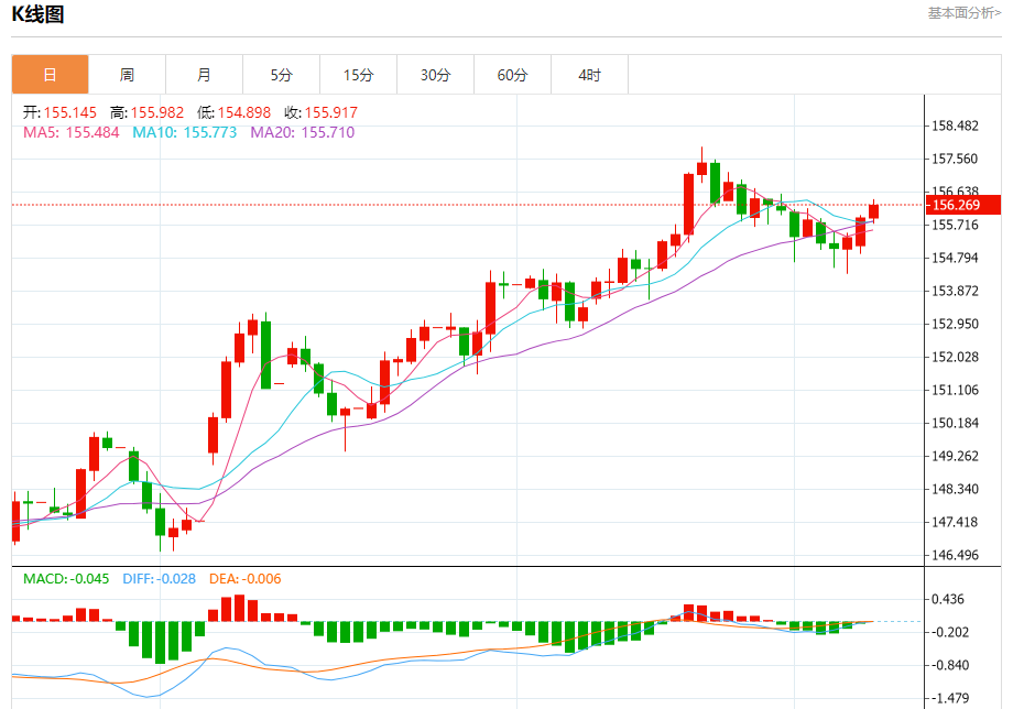 技术点评:只要156.35阻力位不被突破,向下跌破155.70位置的风险很高。