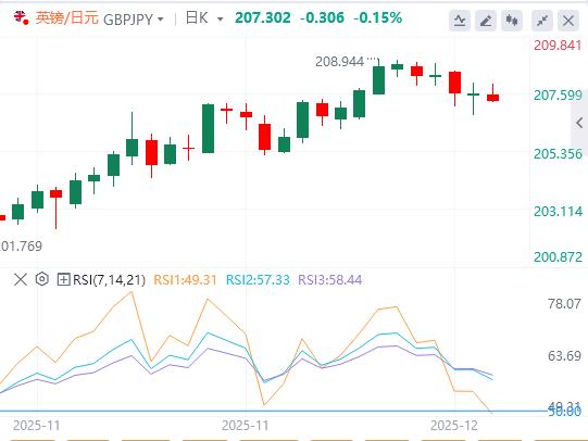 英国国家统计局(ONS)报告称,11月消费者价格指数(CPI)同比上涨3.2%,较10月份的3.6%大幅放缓,未达到预期的3.5%。此外,剔除波动性食品和能源项目的核心指标在报告月份同比上涨3.2%,高于共识预期和10月份3.4%的数字。数据再次印证了市场对英格兰银行(BoE)周四降息的押注,这反过来对英镑(GBP)造成压力,并对英镑/日元交叉造成一定下行压力。