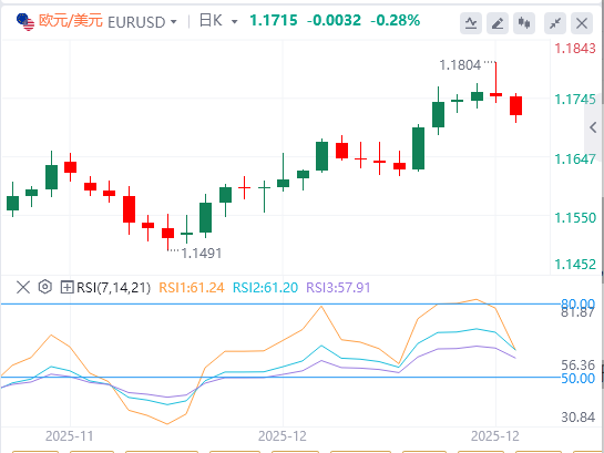 上述1.1685水平是维持整体多头趋势的关键支撑。若在此下方确认,将清除通往12月9日低点1.1615的路径,早于12月1日和2日低点,约1.1590。