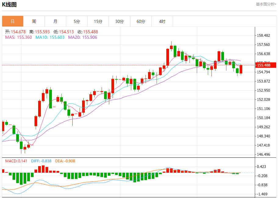 今日周三,欧元兑美元报1.1715,跌幅0.26%;英镑兑美元报1.3337,跌幅0.62%;美元兑日元报155.468,涨幅0.48%。