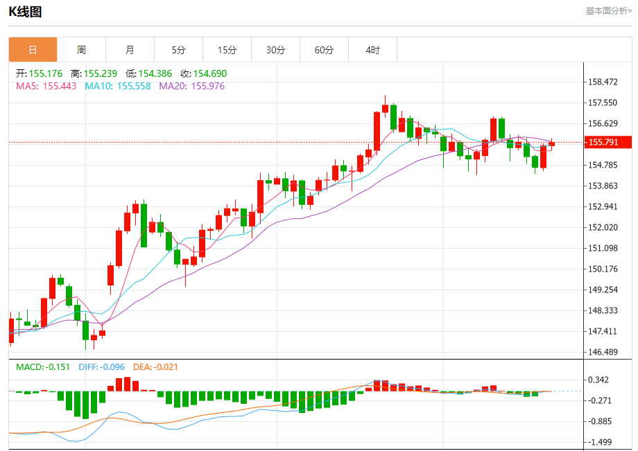 今日周四,欧元兑美元报1.1716,跌幅0.20%;英镑兑美元报1.3381,涨幅0.04%;美元兑日元报155.771,涨幅0.08%。
