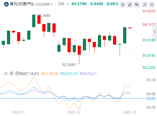 日线图中,美元/印度卢比报90.3935。价格守在上升的20天指数移动平均线(EMA)90.2125上方,保持上行偏向。平均线的正斜率持续引领价格上涨,并吸收了近期回调。