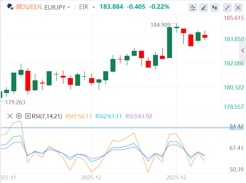 货币市场已预料到欧洲央行将在2026年2月降息25个基点,目前仍低于10%。欧洲央行降息周期即将结束的信号,可能有助于限制欧元近期的跌幅。