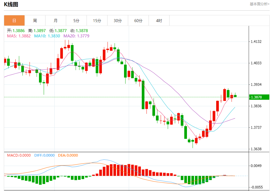 支撑位:1.3871  1.3852  1.3840