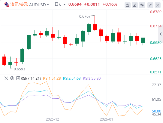 澳元/美元当日走势偏空,核心驱动逻辑为:中国经济数据(GDP、零售、工业)的预期表现反映经济修复力度,叠加美国劳动力市场数据改善推动美元走强,市场预计美联储降息时间推迟至6月,双重因素压制澳元表现。