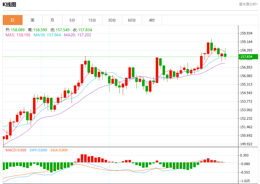 技术点评:跌破158.15,为空头信号,向下的目标将会是157.40。