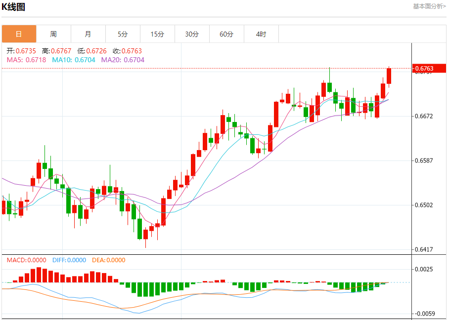 支撑位:0.6740 0.6720 0.6705