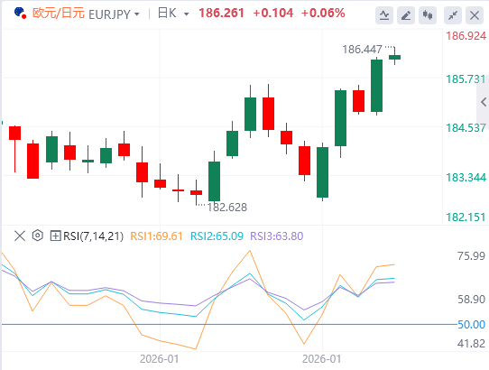 在欧元方面,欧洲央行(ECB)公布了最新的会议货币政策会议纪要,表明央行并不急于进一步调整利率,因为通胀率徘徊在2%目标附近,市场预期显示2026年将保持稳定政策。市场目前预计,在2月5日的下一次欧洲央行政策会议上,利率保持不变的可能性很高。