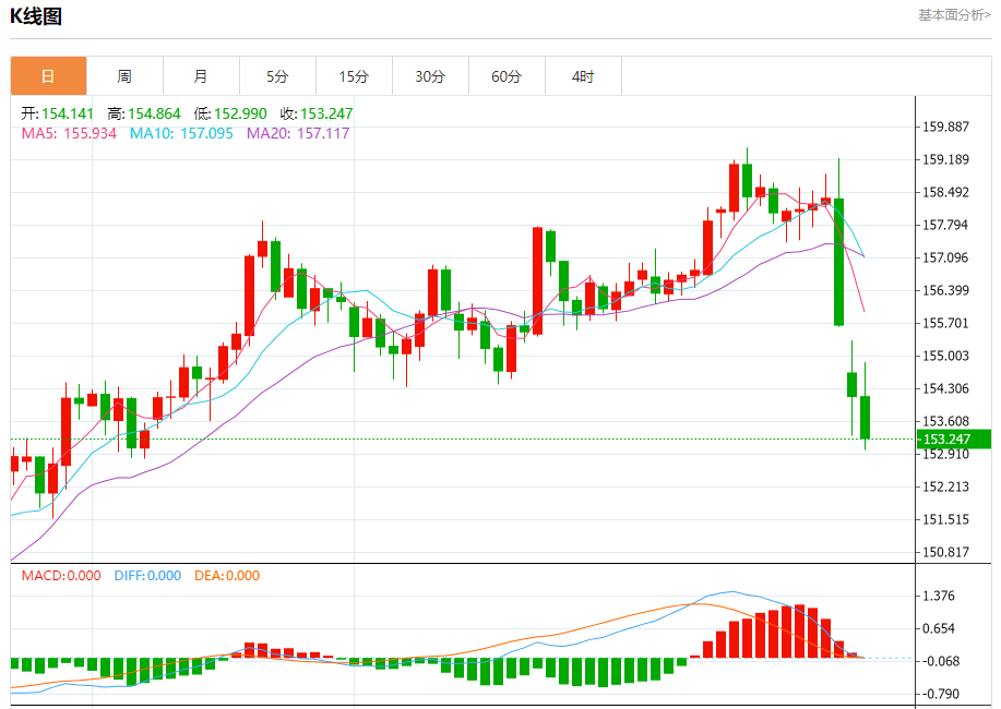 今日周二,欧元兑美元报1.1924,涨幅0.36%;英镑兑美元报1.3737,涨幅0.43%;美元兑日元报153.300,跌幅0.57%。