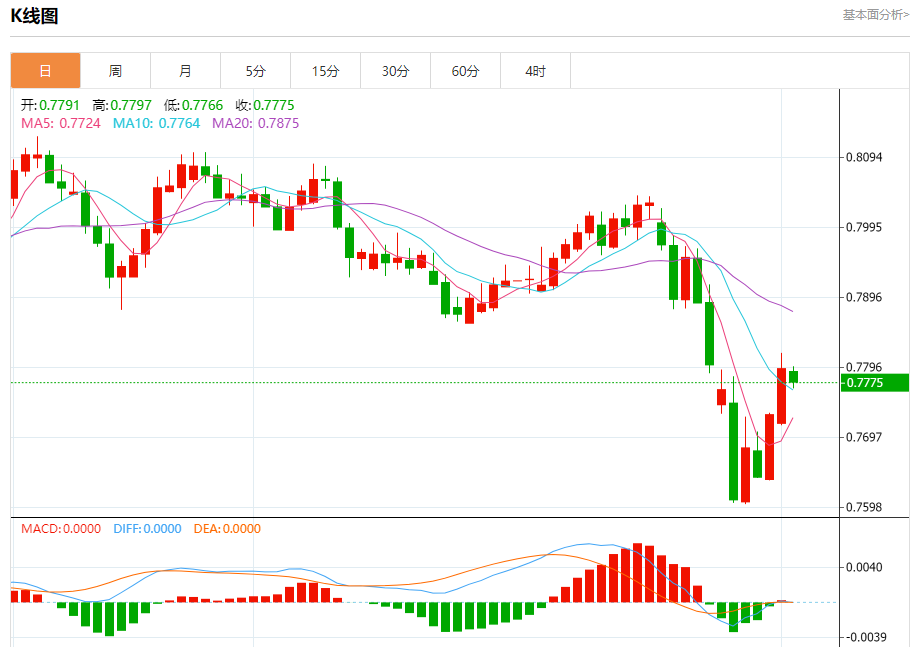 支撑位:0.7760 0.7735 0.7710