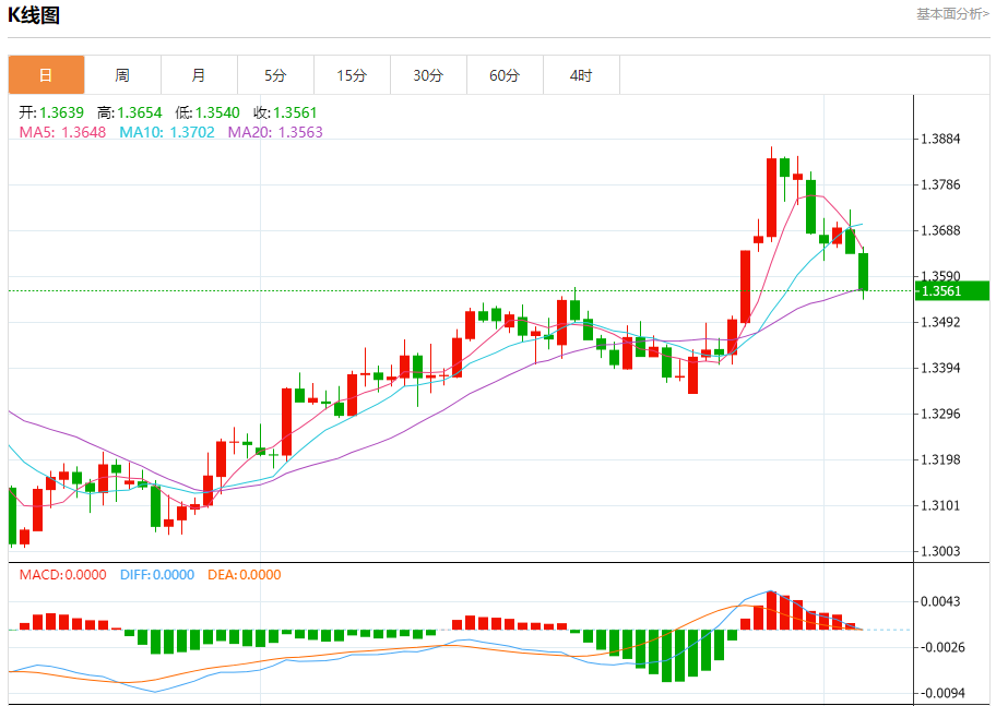 技术点评:只要1.3625阻力位不被突破,向下跌破1.3535位置的风险很高。