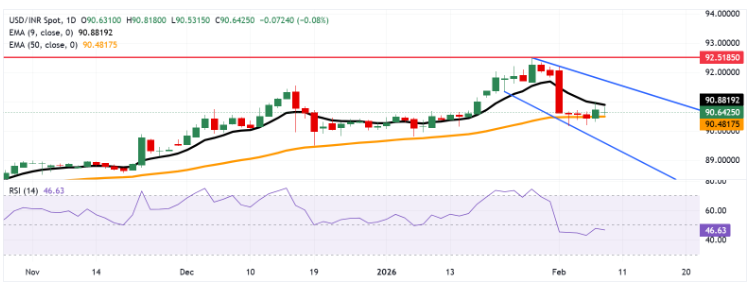 技术分析:美元/印度卢比在看跌动能中跌向90.50