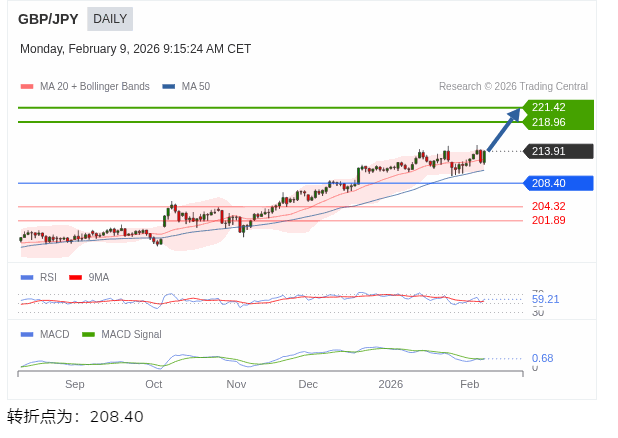 周一盘中,英镑/日元报212.863, 跌幅0.49%.