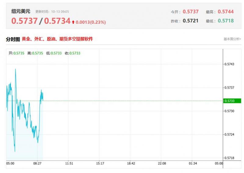 截至目前,纽元/美元上涨0.23%,报0.5734。